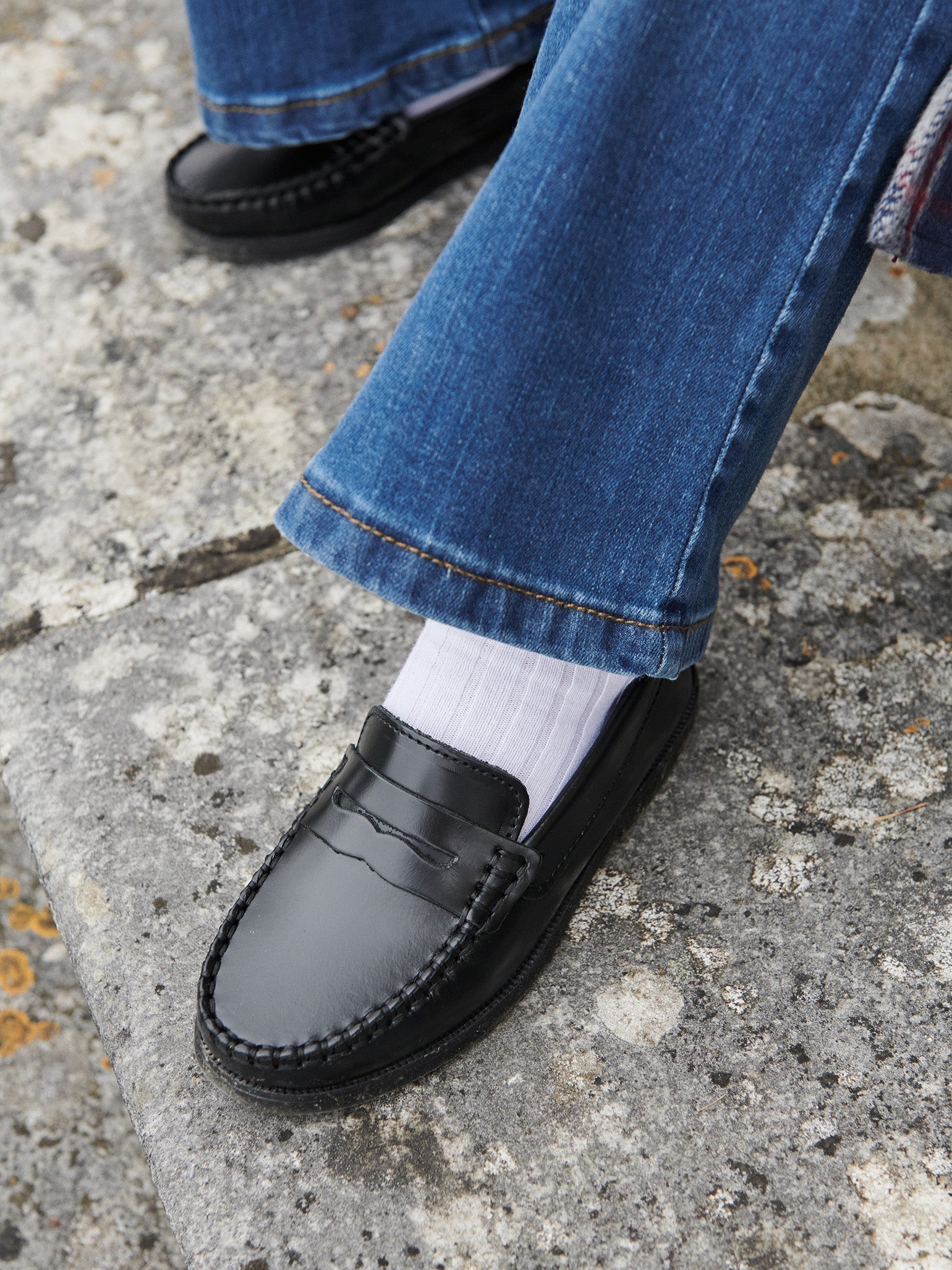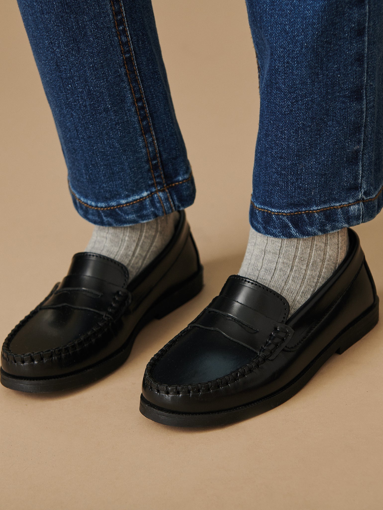 Designed by Founder and Creative Director Celia Muñoz, the Loafer Castellanos are a wise investment your son can dress up or down depending on the occasion. They're made from polished black Nappa leather and stitched with a classic finish. Wear them with Ribbed Knee High Socks to achieve a charming school-friendly pairing, or wear them with Short Socks for a bare-ankled look.