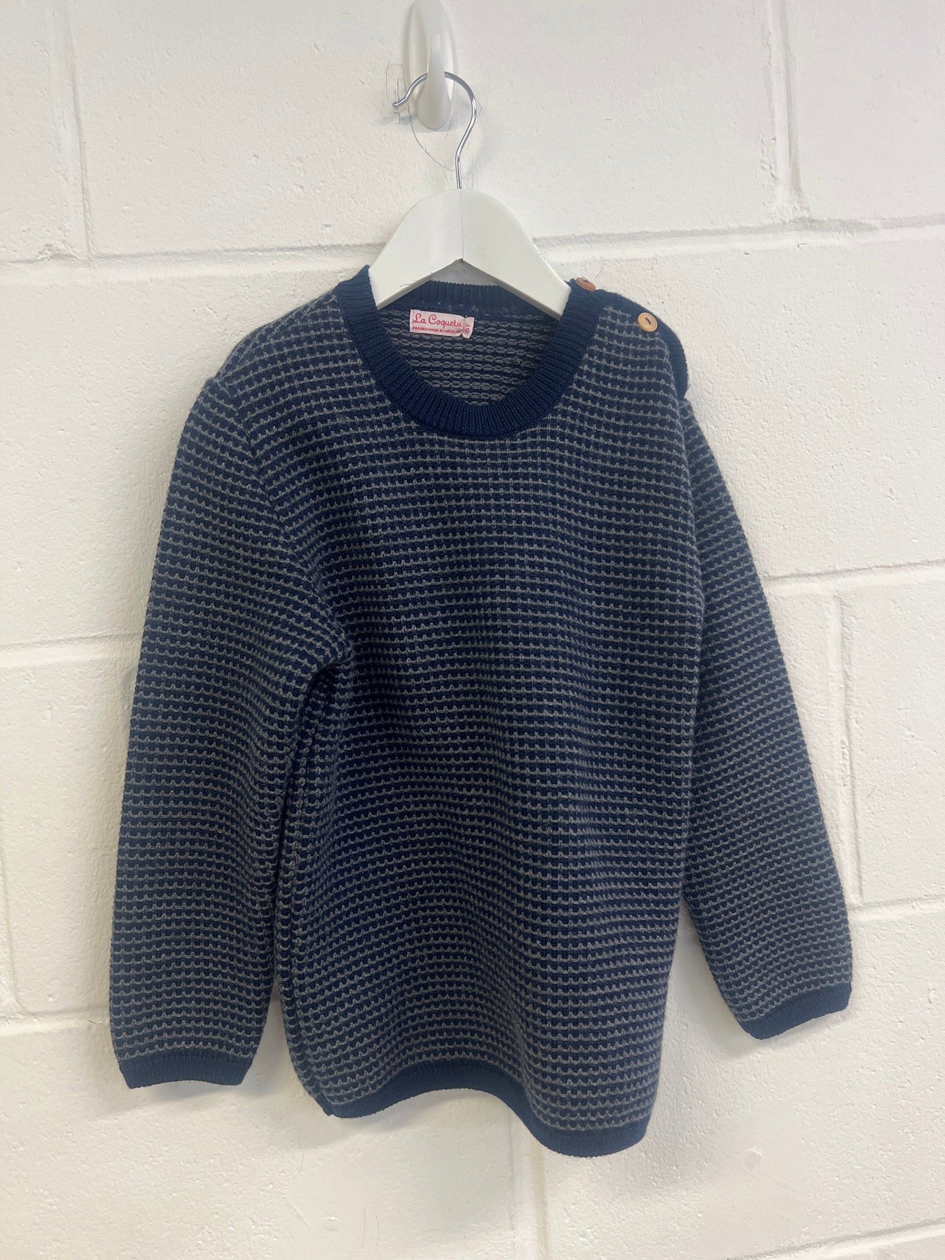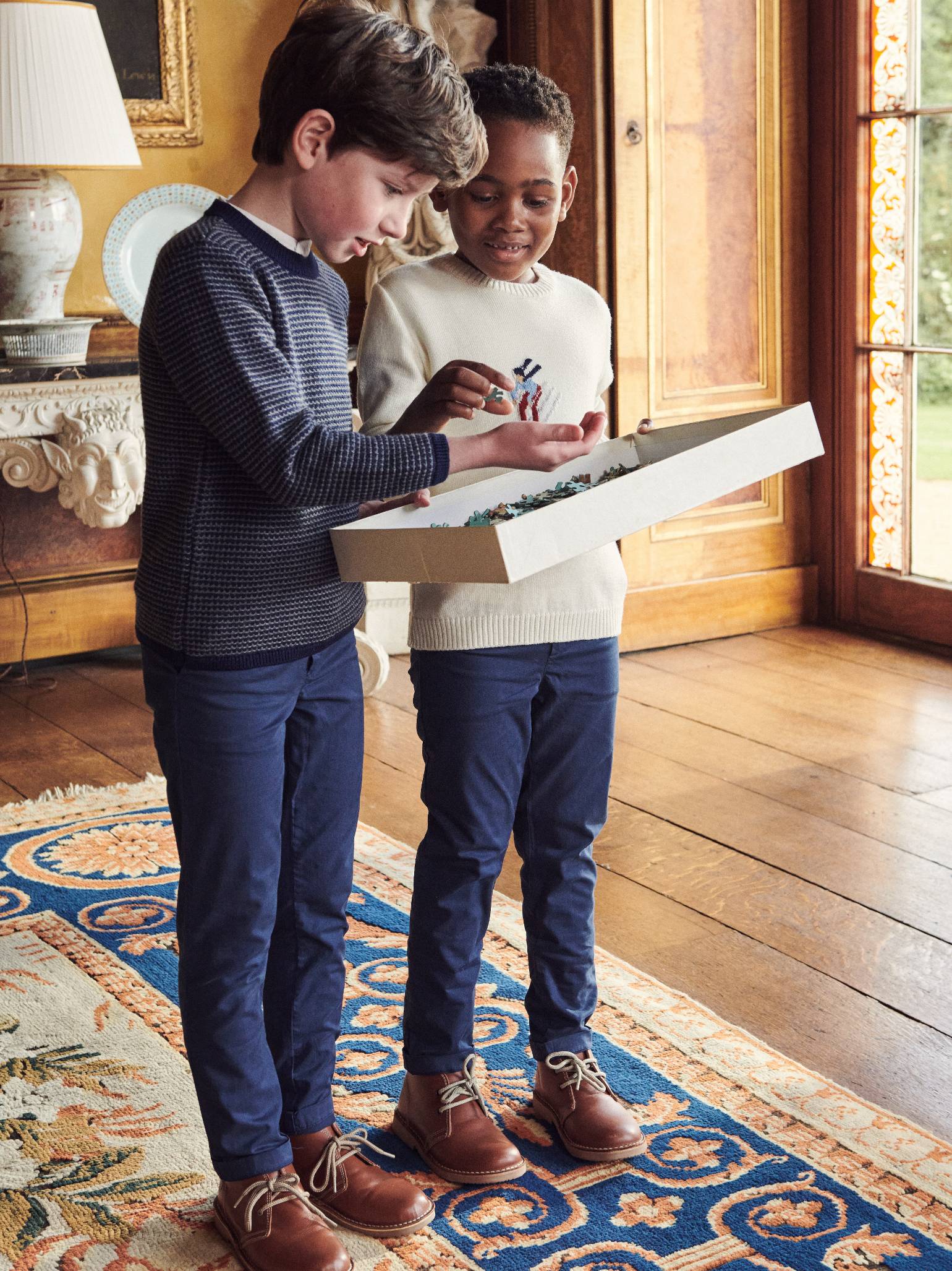 La Coqueta's Bromo Merino Jacquard Boy Jumper is a staple piece that has evolved over the years, epitomising our dedication to meticulous craftsmanship and our rich Spanish heritage. Knitted in Spain from pure Merino wool, decorated with a woven jacquard pattern, it has the most luxuriously soft handle that allows for breathability and crease resistance. Rendered in a versatile shade of navy blue, it is a statement piece that offers an indispensable year-round layer, drawing inspiration from classic sweaters for a collegiate, preppy feel. Sufficiently elevated for weekend wear, it features a timeless, relaxed design finished with raglan sleeves and a ribbed round neck collar, hems and cuffs for added flexibility. A quintessential favourite for the season ahead, this is a piece that guarantees endless wear, whatever the occasion. Layer over one of La Coqueta's crisp cotton shirts for extra warmth, or as is with classic chinos or trousers for elevated weekend-friendly wear.