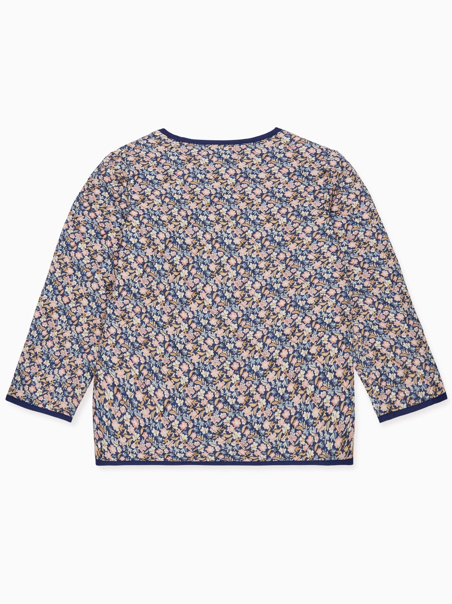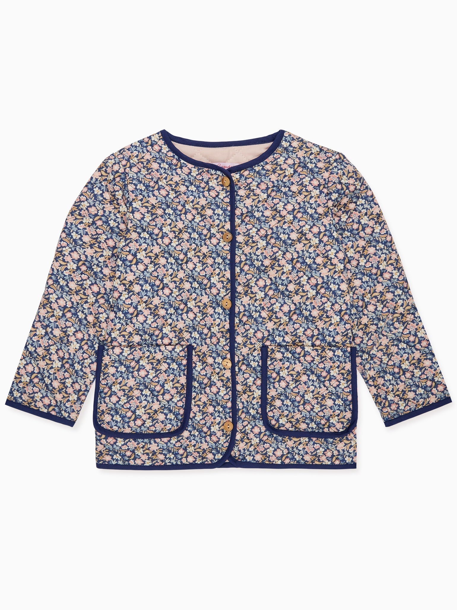 Welcome the new season in style with the Calida Quilted Girl Jacket, infusing signature tailoring with the imaginative, nostalgic world of La Coqueta. Crafted in Spain from luxuriously soft pure cotton that is lightweight, breathable, and kind to even the most delicate skin, it has an elegant oversized silhouette and drapes effortlessly, adorned with embroidered diamond quilting and contrasting navy ribbon trims. Rendered in a versatile shade of classic and decorated with a charming ditsy floral print, it has long sleeves, patch pockets at the front, and handcrafted wooden buttons to fasten. The relaxed silhouette layers perfectly over your little one's favourite winter outfit, and offers an easy-wear choice for weekend wear. This charming jacket is fully reversible, and features a pale pink alternative option, ensuring your little girl gets the most wear out of this wardrobe winner.