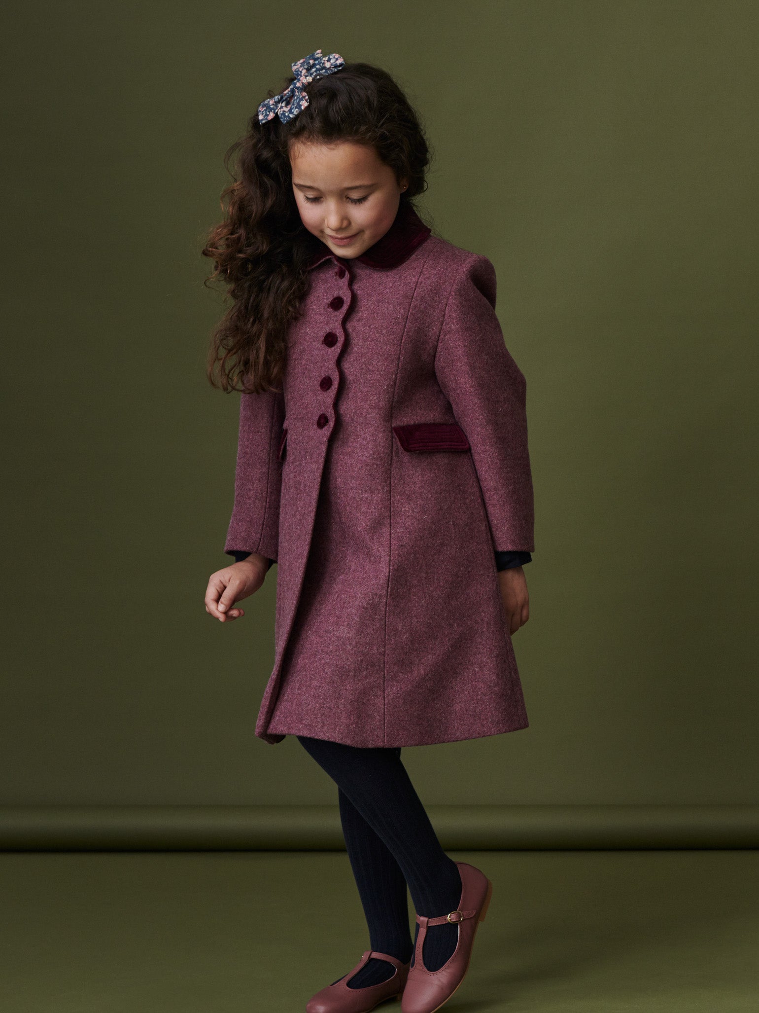 The Anisa Girl Coat is La Coqueta's answer to all your seasonal wardrobe needs. Classic tailoring at its best, this pure wool coat will keep your little girl warm and stylish all season long. Featuring long sleeves, a Peter pan collar and pockets offset with deep jewel-tone burgundy velvet, finished with scalloped detailing around the buttons. This piece will become a wardrobe staple perfect for winter occasions or elevating the school run.
