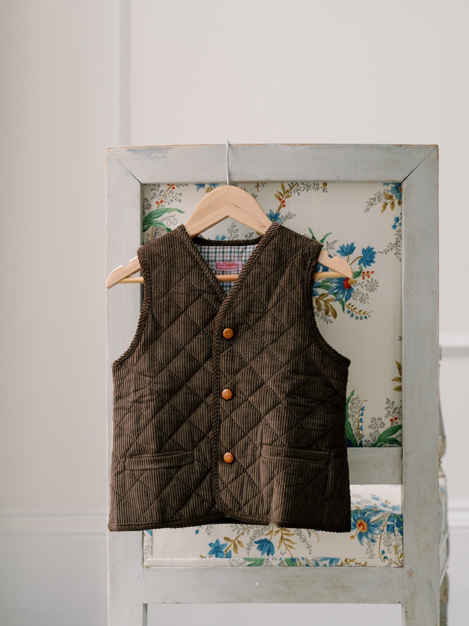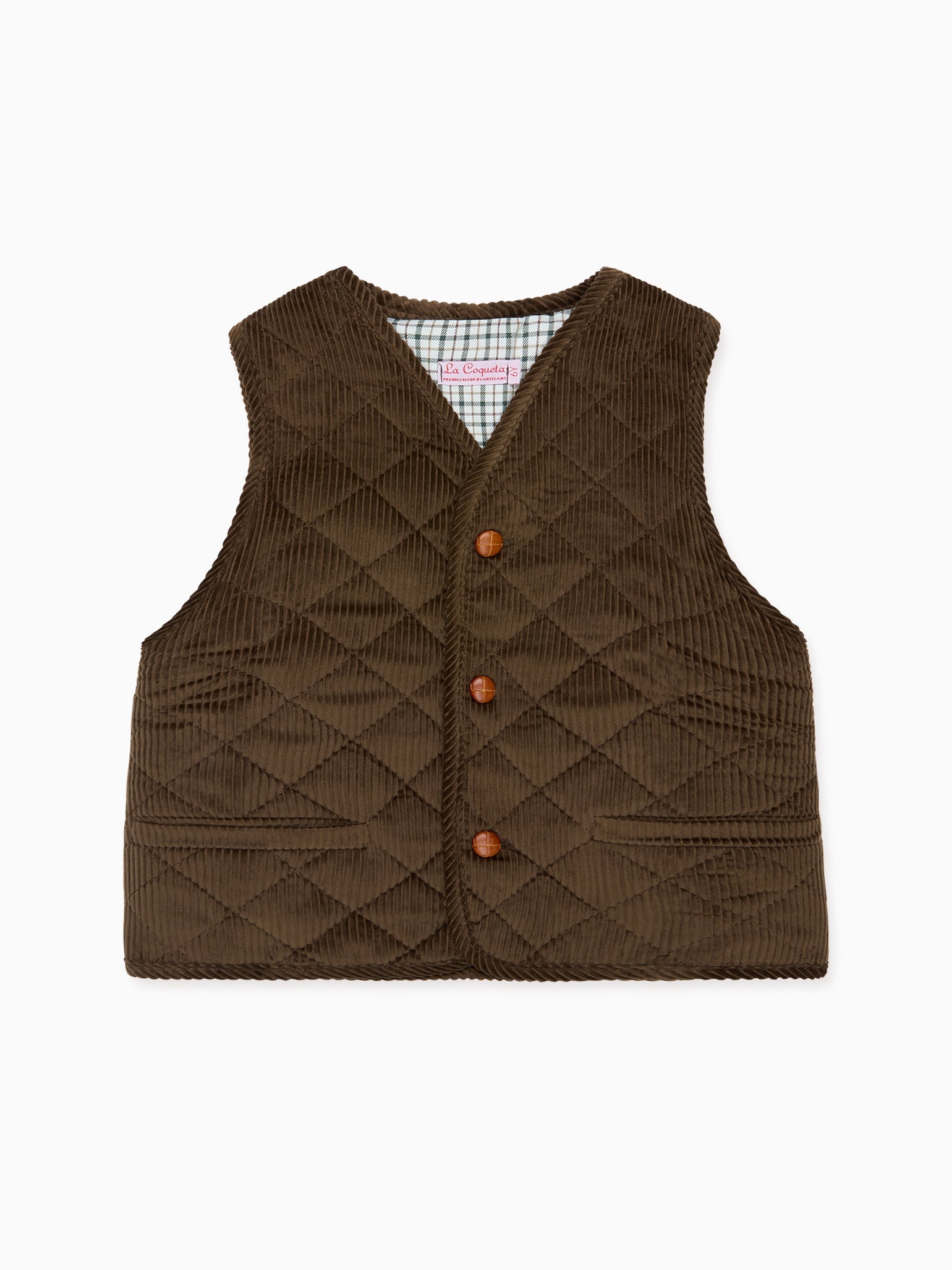 Chocolate Brown Caza Corduroy Kids Sleeveless Jacket