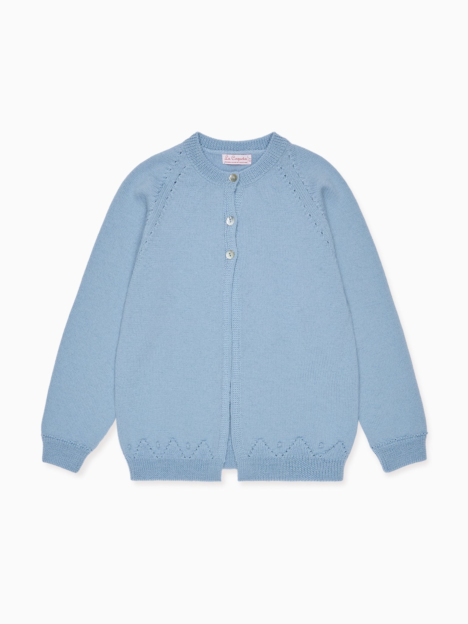 La Coqueta’s Alvira Merino Girl Cardigan is a beautifully crafted layering piece that adds both warmth and elegance to your little girl’s wardrobe, spun from pure Merino wool in a fine-gauge knit for a soft, breathable, and gentle touch on delicate skin. The subtle dusty pink hue is enhanced by intricate pointelle patterns along the hem and shoulders, infusing the piece with traditional charm. Designed with a classic round neck, signature mother of pearl buttons, and a relaxed fit, the Alvira Cardigan is both practical and timeless. Its dropped shoulders, long raglan sleeves, and chunky ribbed trims add extra cosiness, making it the perfect layer for any occasion. Lovingly crafted in La Coqueta’s family-owned ateliers, this cardigan is a thoughtful gift or an enduring staple in your little girl’s wardrobe. Versatile enough to layer over dresses or separates, it seamlessly blends functionality with effortless style. With exceptional attention to detail and quality, it’s a piece to cherish for years to come. Coordinate with a brother wearing the Brio Merino Boy Jumper or a little sister wearing the Alvira Baby Girl Merino Cardigan for those adorable, perfect-picture moments.