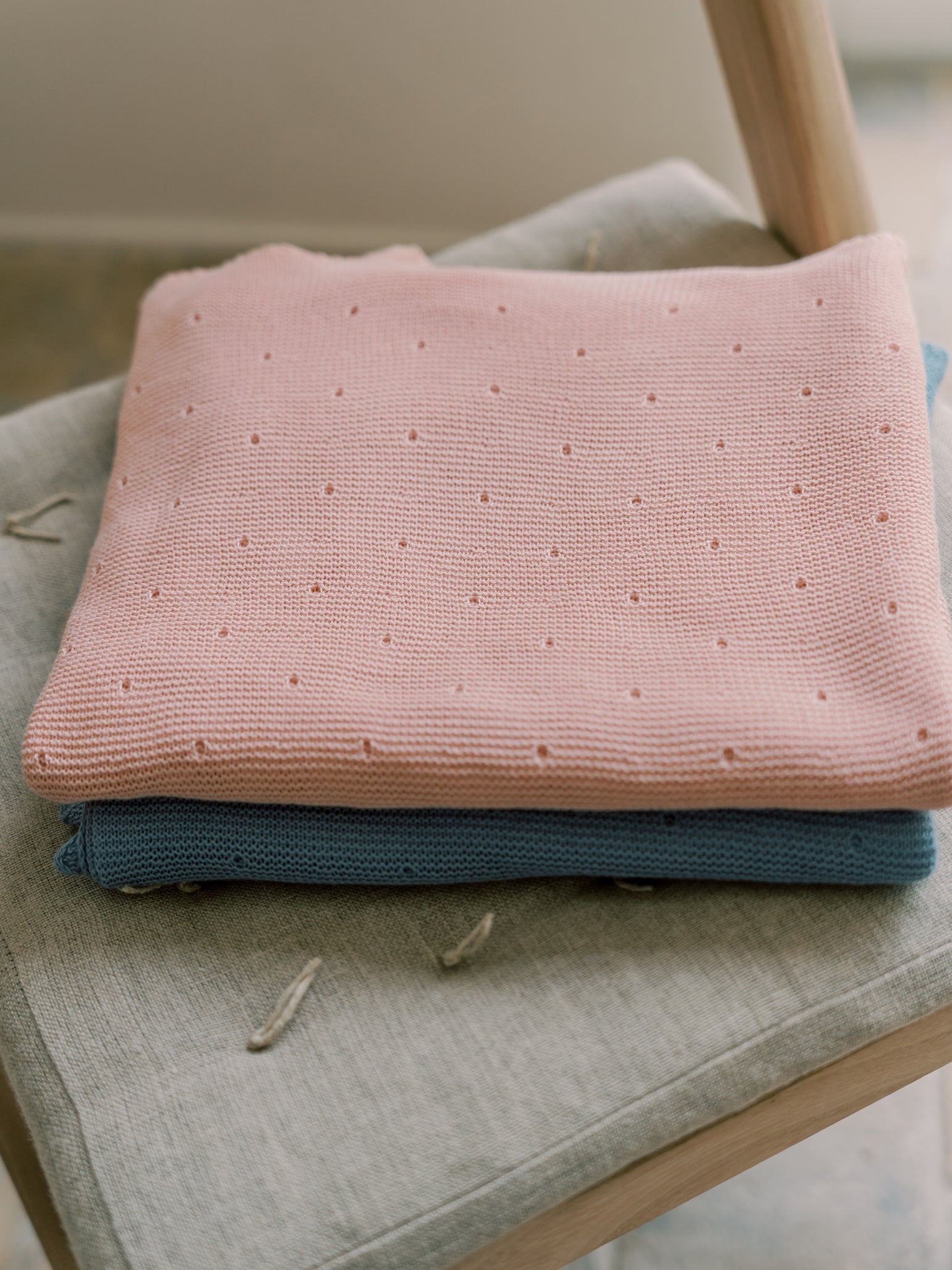 If there is one thing more precious than a new arrival, it is a pure cotton-wrapped bundle of joy. La Coqueta's Openwork Cotton Baby Blanket is exquisitely soft and kind to even the most delicate skin, ideal for wrapping your little one up tightly during the colder months. This version comes in a dreamy shade of dusty pink and is gift-giving-ready for surprising a special new arrival. Knitted in Spain at our family-owned ateliers, this warm blanket will create a cocoon of luxurious softness for your baby, with a fine gauge knit for the softest handle and total comfort. It is decorated with a stunning openwork pattern and is the perfect size for layering in a pram or swaddling.