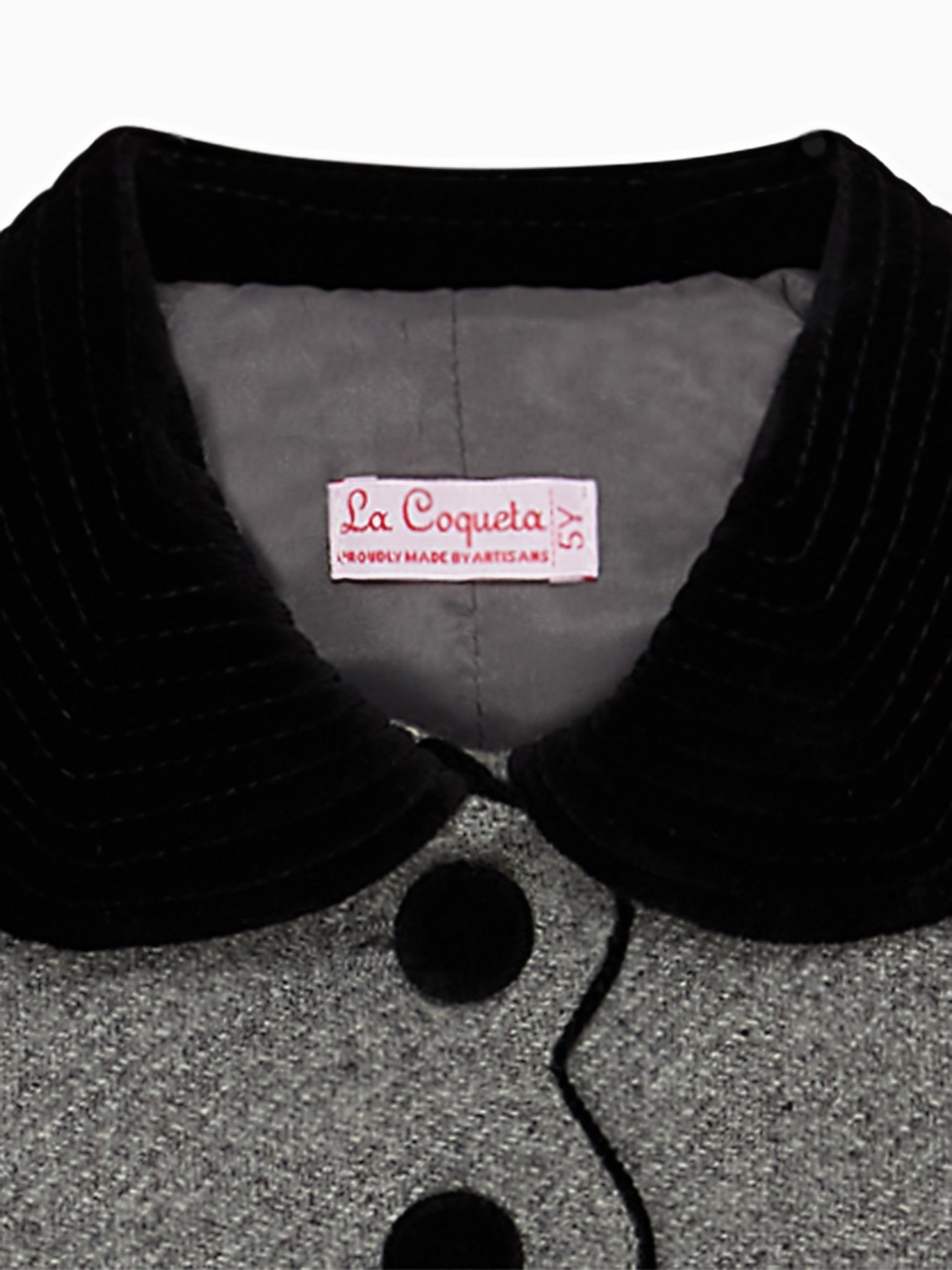 La Coqueta's Anisa Wool Girl Coat is the ultimate answer to all your seasonal wardrobe needs. It's rendered in a school-friendly shade of grey and demonstrates the art of classic tailoring at its best, constructed from 100% wool with a traditional yet contemporary silhouette. Structured and practical in design, it will keep your little girl warm and stylish all season long, featuring long sleeves, a Peter pan collar and pockets offset with dark grey velvet, rear vents for uninhibited movement, and is finished with scalloped detailing around the buttons. This piece will become a wardrobe staple perfect for winter occasions or elevating the school run, helping your little one defend against the colder elements.