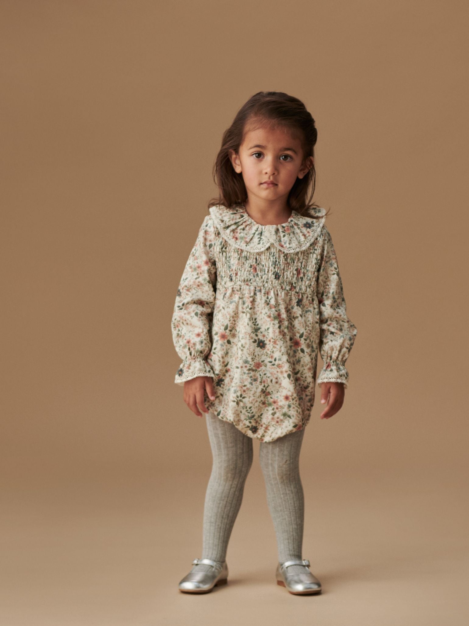 La Coqueta's Lorena Baby Girl Romper is perfect for seasonal dressing and can be effortlessly dressed up or down depending on the occasion. It's crafted from pure cotton, decorated with an ivory floral print and rendered in a comfortable bubble silhouette, with intricate shirred details across the bodice as a nod to Founder and Creative Director Celia's Spanish roots. It has long blouson sleeves artistically shirred at the cuffs, and a stunning Peter Pan collar traced with delicate lace trims. Embodying our love for feminine silhouettes and vintage-inspired prints, it is the ultimate romper for party season and weekend wear. Fully lined with pure cotton for extra comfort, it fastens at the back and crotch with a signature mother of pearl placket for fuss-free changing.