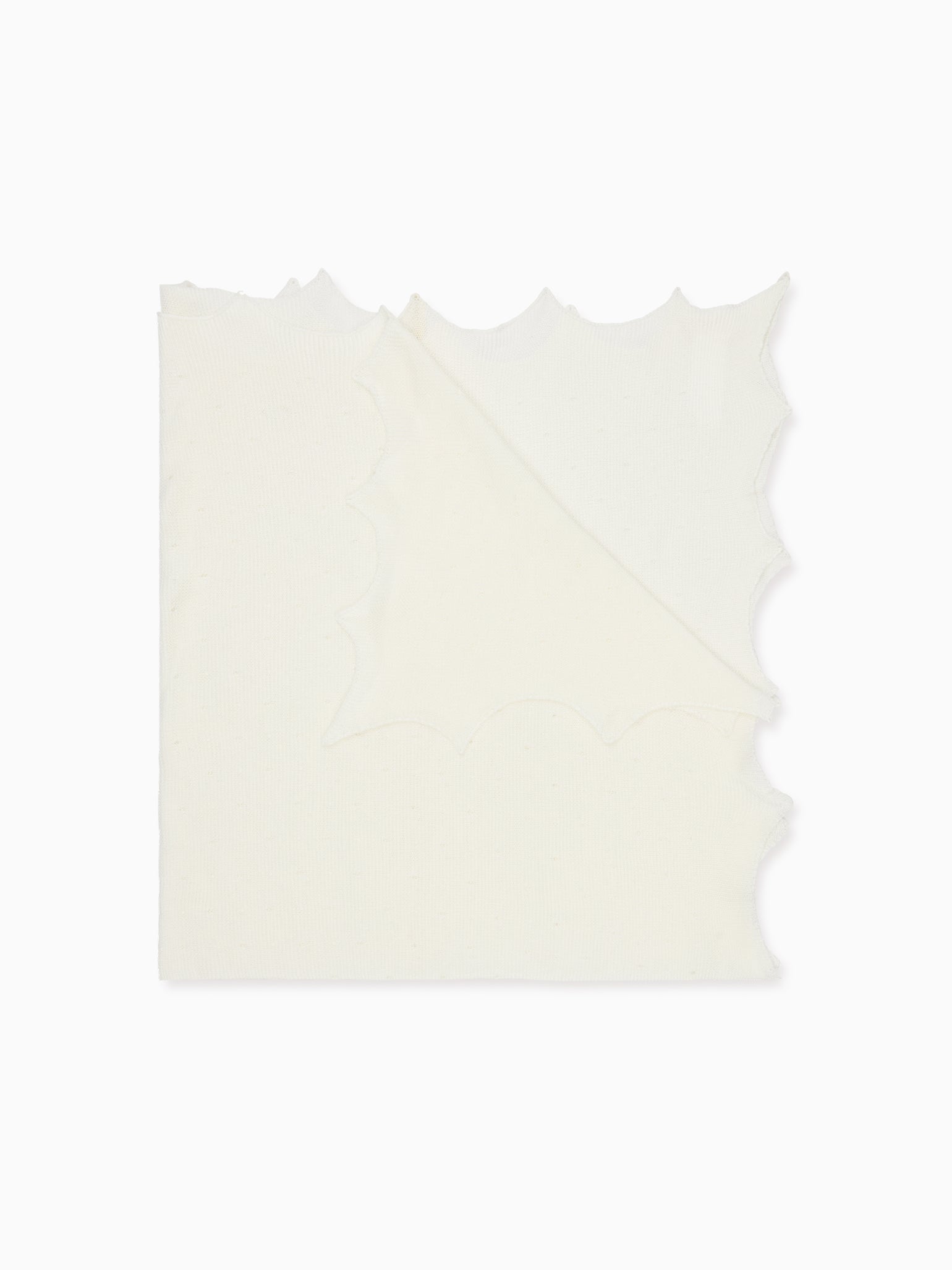 If there is one thing more precious than a new arrival, it is a pure cotton-wrapped bundle of joy. La Coqueta's Openwork Cotton Baby Blanket is exquisitely soft and kind to even the most delicate skin, ideal for wrapping your little one up tightly during the colder months. This version comes in a classic shade of ivory and is gift-giving-ready for surprising a special new arrival. Knitted in Spain at our family-owned ateliers, this warm blanket will create a cocoon of luxurious softness for your baby, with a fine gauge knit for the softest handle and total comfort. It is decorated with a stunning openwork pattern and is the perfect size for layering in a pram or swaddling.