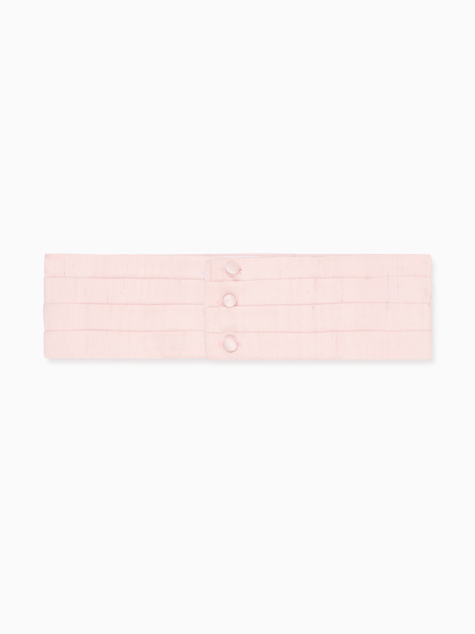 Elevate your son's special occasion ensemble with La Coqueta's impeccably crafted Malva Ceremony Silk Boy Cummerbund. Crafted from pure silk and rendered in a dreamy shade of light pink, this distinguished accessory showcases classic tailored elements, exemplified by the meticulous craftsmanship of the pleats, skillfully fashioned at our family-owned atelier. A staple of black-tie attire since the 19th century, La Coqueta's timeless interpretation of this traditional accessory is the perfect addition to your next special event. Pair it with a classic Knickerbocker and a Ceremony Shirt for a sophisticated ceremony look. Simply tie it around the waist and fasten the covered buttons, ensuring a polished appearance, whatever the occasion.