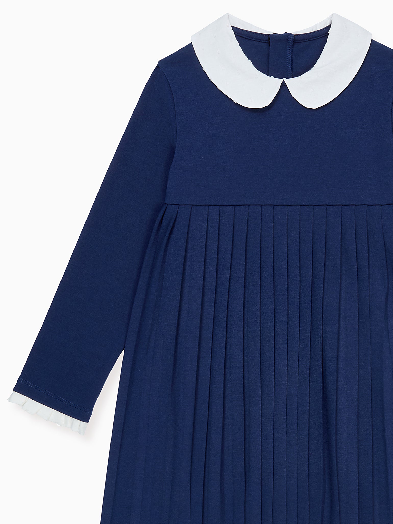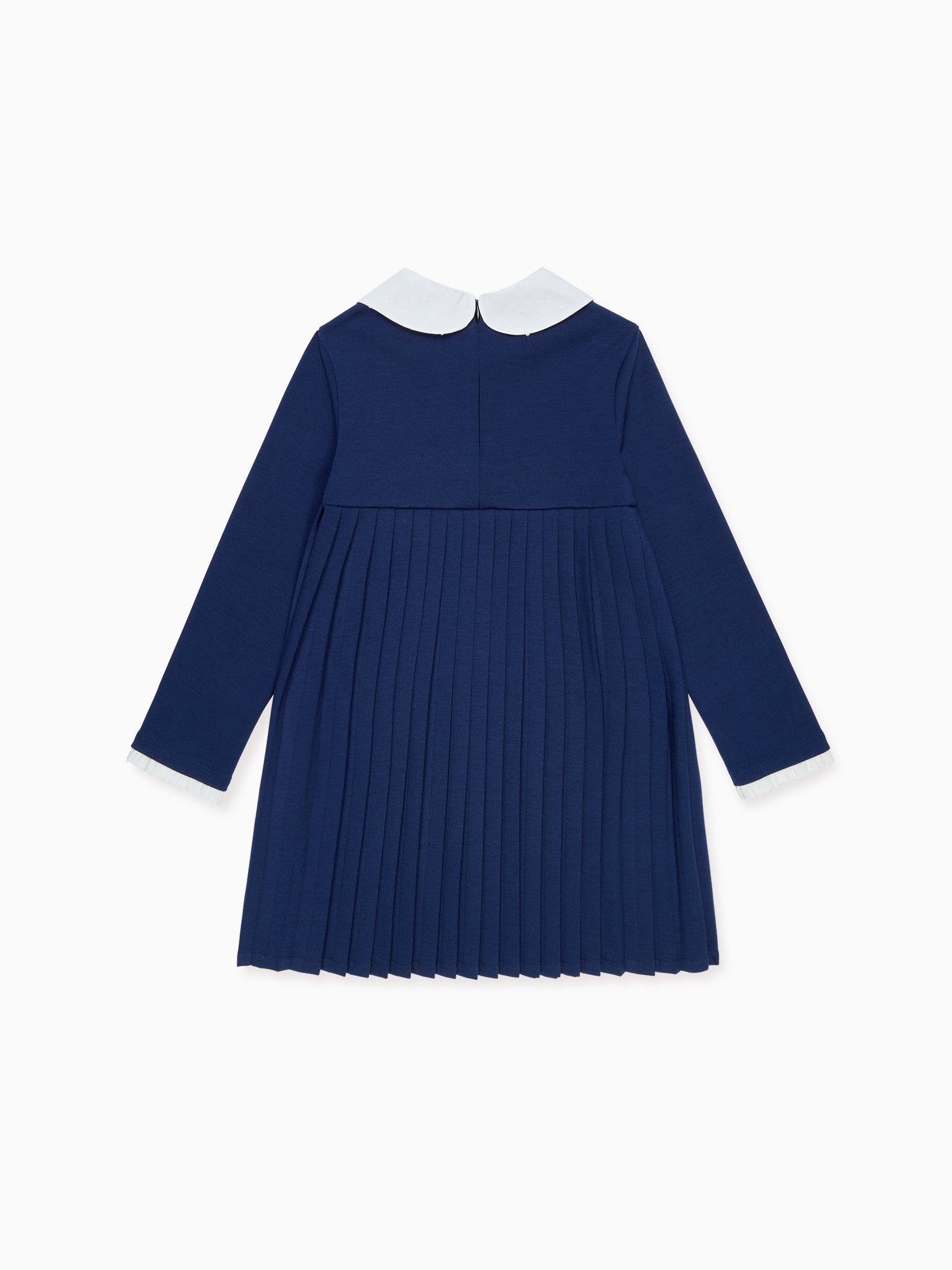 This girl's navy blue dress offers breathable comfort and ease of movement. The refined Peter Pan collar and pintuck bodice reflect La Coqueta’s attention to traditional craftsmanship, while the modest knee‑length skirt makes dressing effortless. Full-length lining ensures softness and coverage, while the relaxed fit and gentle structure suit growing children. The dress features a practical button-back fastening for fuss-free wear.