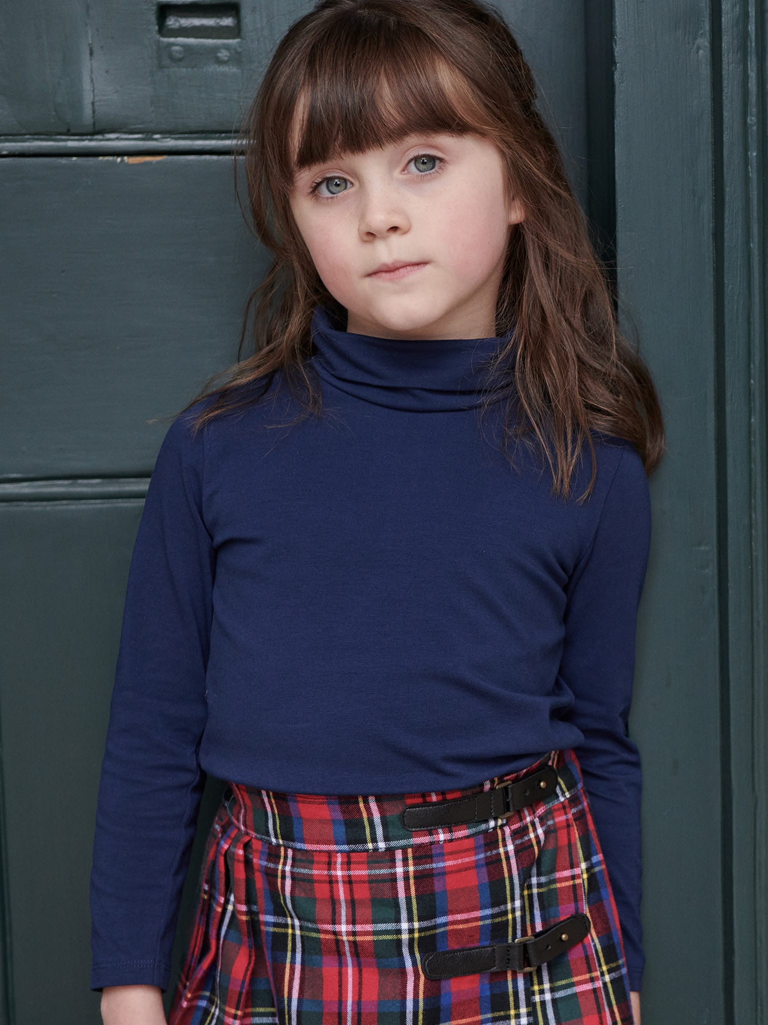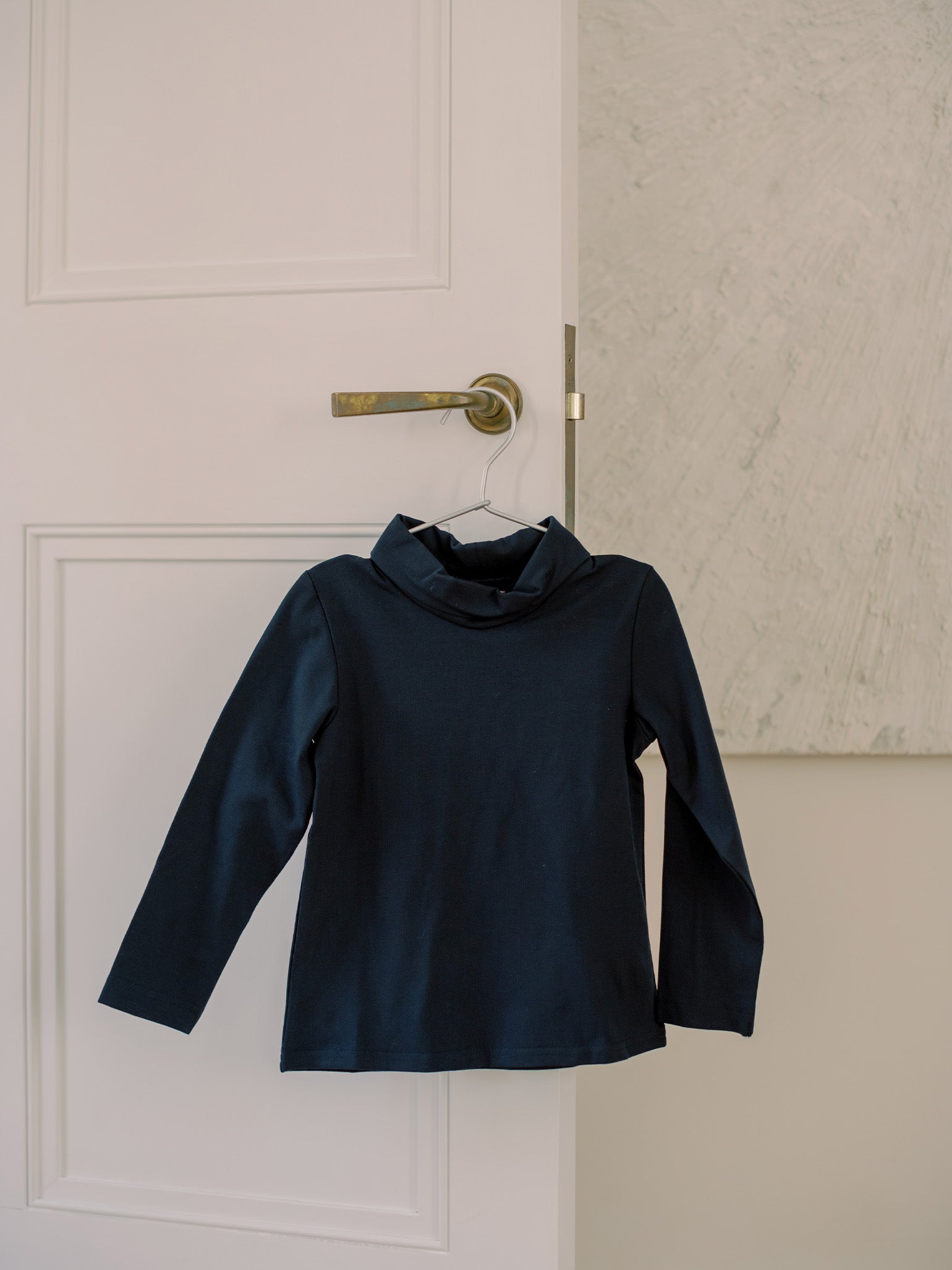 La Coqueta's unisex Navy Jersey Sarto Long Sleeve Kids Top is crafted from luxuriously soft cotton with a touch of elastane for extra stretch. It is a must-have for the colder months, cut to a fitted design in versatile navy with a turtle neckline for a suave yet contemporary aesthetic. Featuring long sleeves and an easy-wear pull-on silhouette, our machine-washable top is perfect for layering under chunky knits for extra insulation this season. Loved by little girls and boys alike.