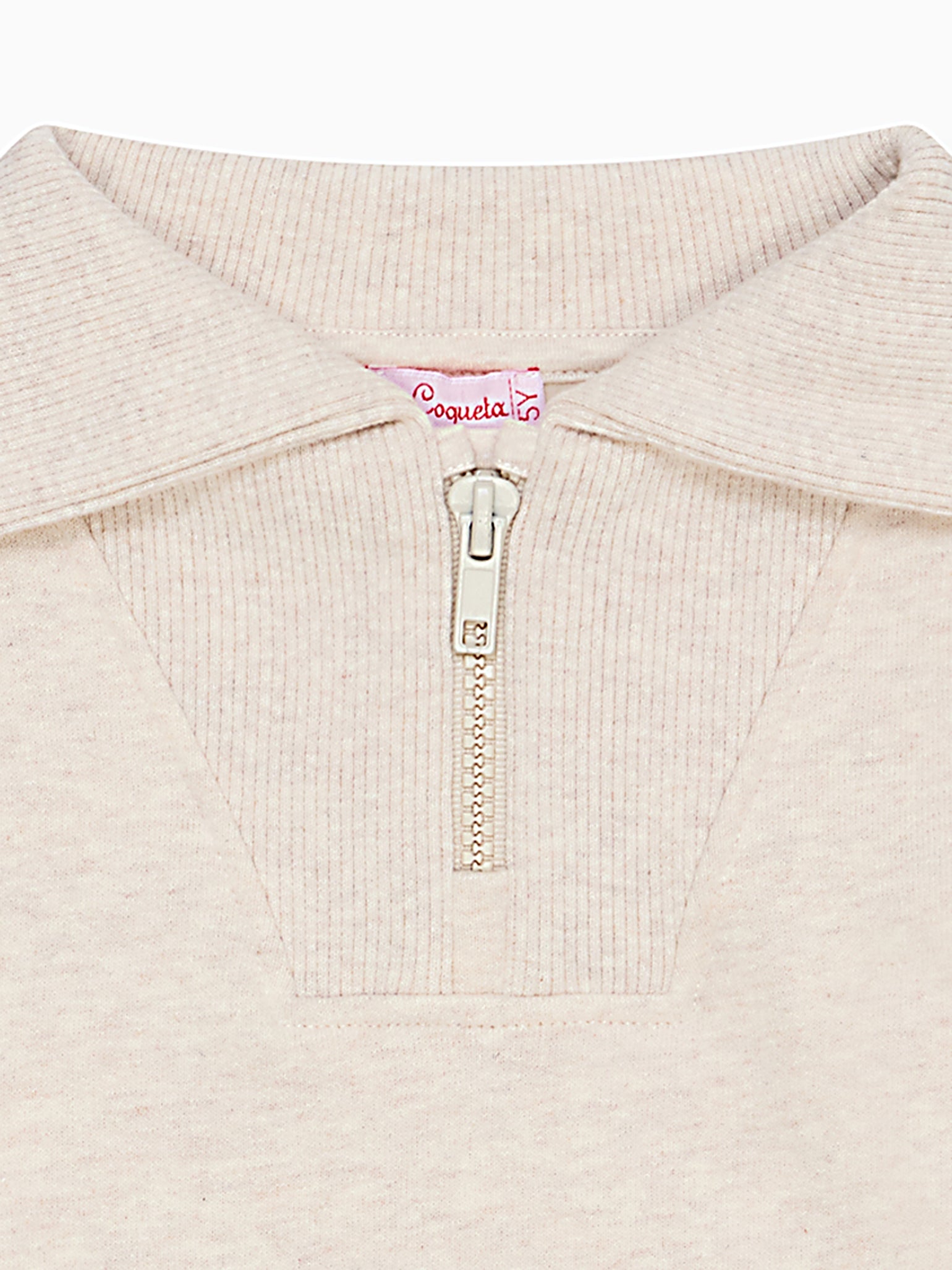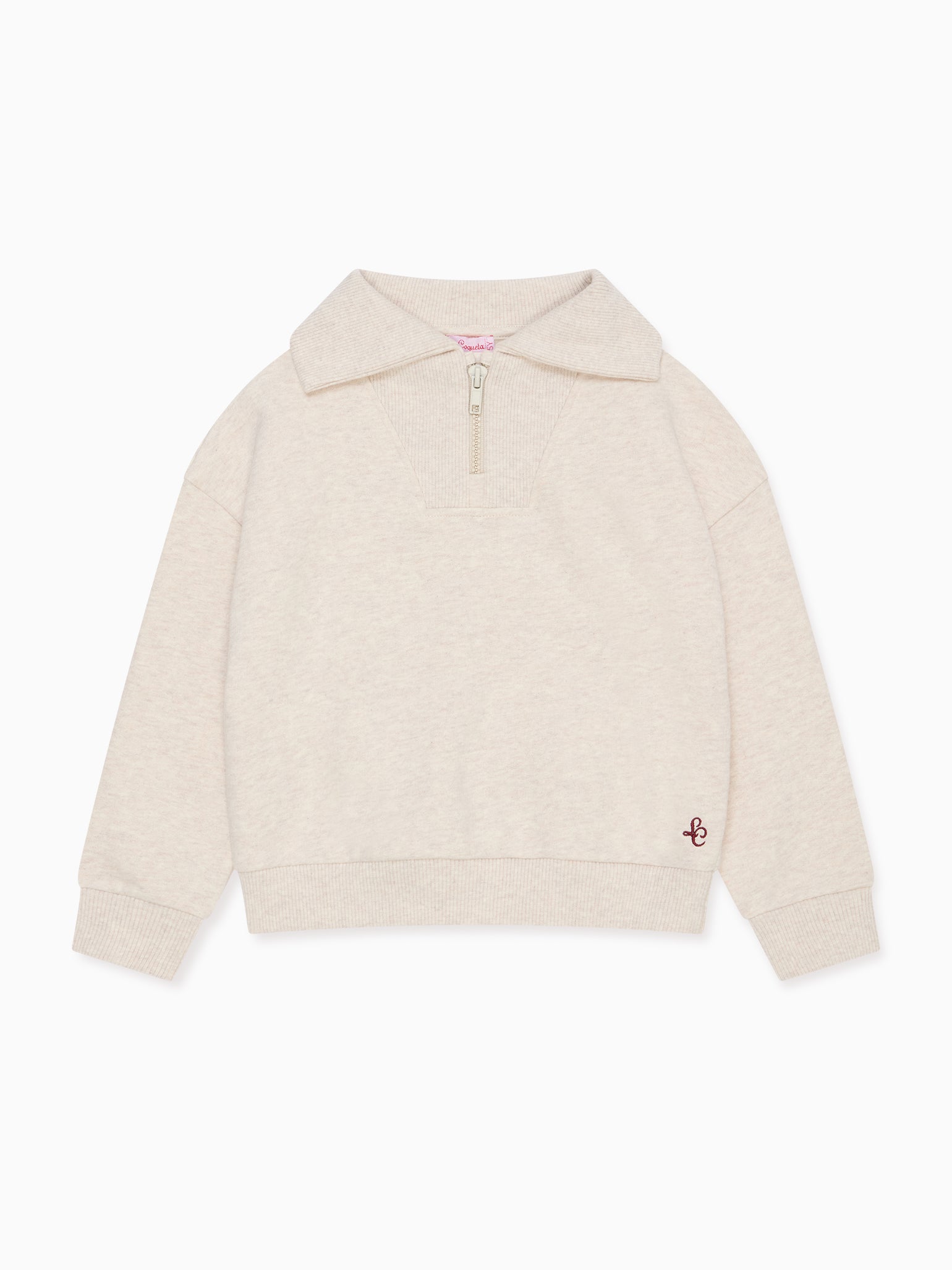 La Coqueta combines sporty casualwear with a nod to tailored clothing, with the Laza Kids Sweatshirt ticking all the boxes for elevated yet simple dressing. This half-zip pullover is crafted from responsibly sourced soft cotton jersey, and finished with an embroidered 'LC' logo, for a carefree and lighthearted style. It has a high, funnel neck and a relaxed fit that cinches at its ribbed contrasting hem, with long sleeves and ribbed cuffs. Each jersey piece from the latest collection has an extra soft handle that is kind to even the most delicate skin, using cotton that has been brushed on the inside to give an extra warm and cosy finish, with moisture-wicking and quick-drying qualities and enhanced comfort. Rendered in a soft oatmeal marl, it's perfect for girls and boys alike.