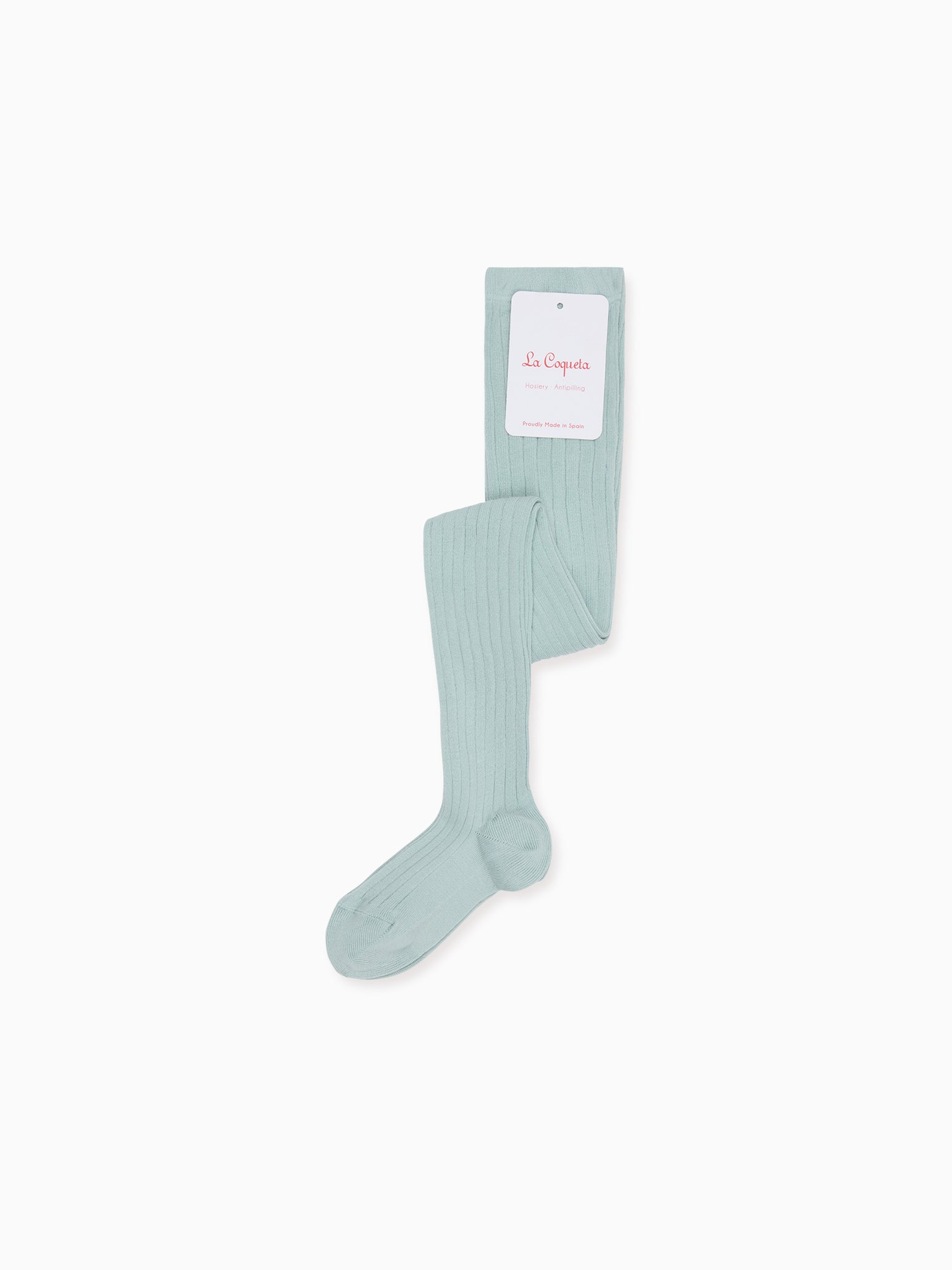 An essential to finish off any outfit, add that final La Coqueta touch with our gorgeous cotton-rich Pale Green Ribbed Kids Tights. Made from a super-soft cotton blend knit, these classic wardrobe staples have plenty of stretch for maximum comfort. Proudly made in Spain, our hosiery comes in every colour you can imagine, with a wide range of socks and tights to perfectly compliment our kid's leather shoes. Great come rain or shine, these traditional ribbed tights are perfect for any occasion. Available in Ribbed Kids Knee High Socks and Ribbed Kids Short Sock versions, ideal for matching sibling styles.