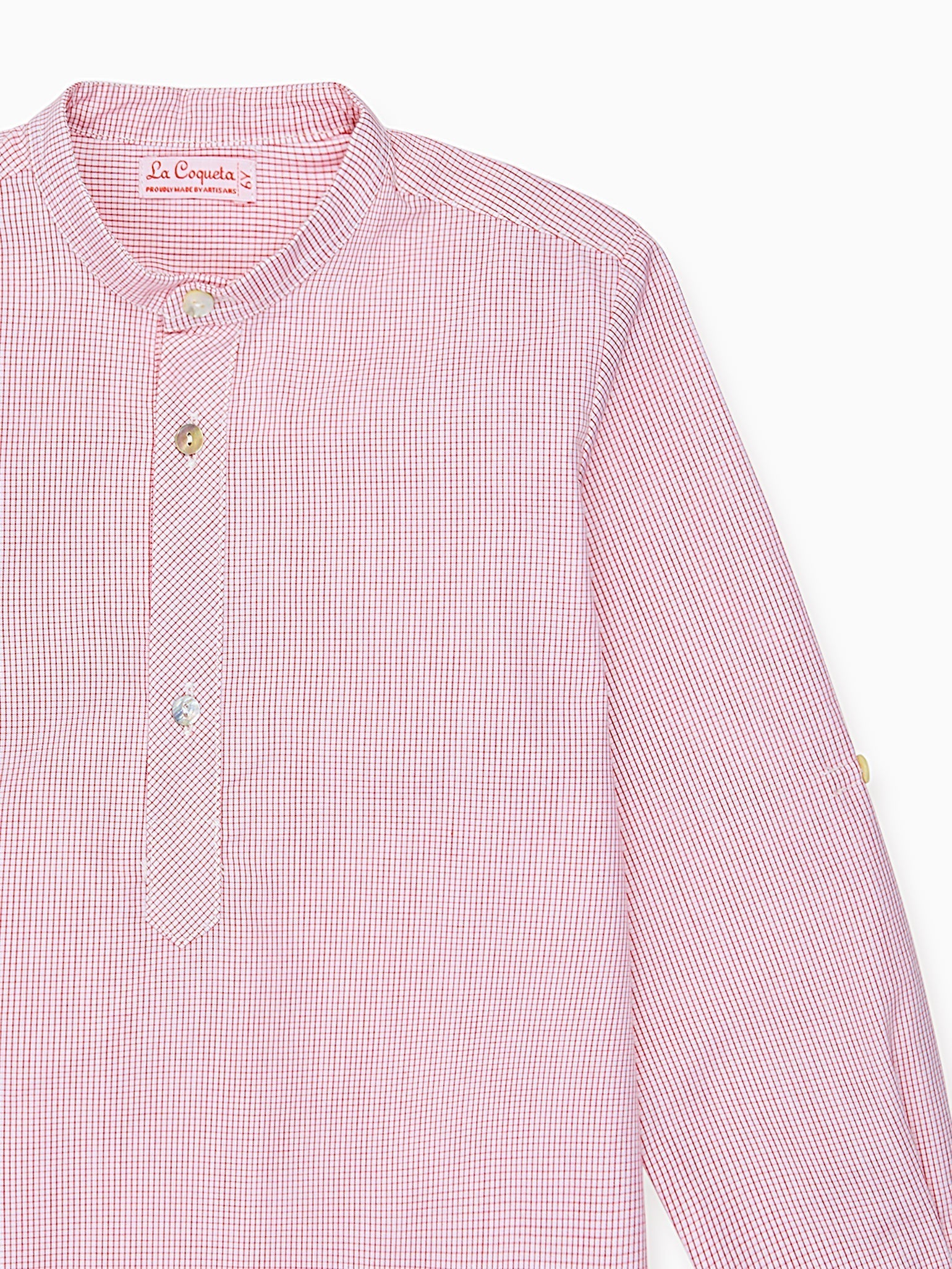 Red Check Jazmin Cotton Long Sleeve Boy Shirt is a refined boys' red checked shirt, crafted in Spain from soft pure cotton with subtle red and navy checks. This elegant boys’ checked shirt blends heritage tailoring with comfort, making it perfect for schooldays, weekend outings, or family gatherings.