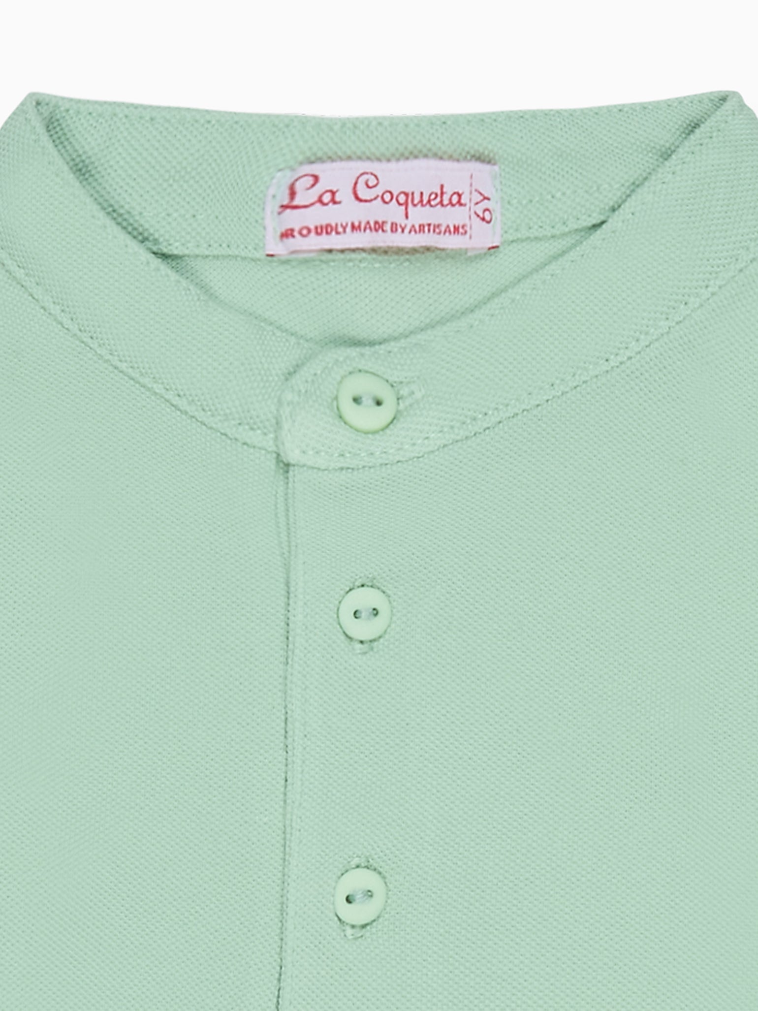 La Coqueta's Alcon Boy Cotton Polo Shirt is a must-have for everyday wear, elevating your son's warm-weather wardrobe with a versatile edge. Cut from exceptionally soft pure cotton that is breathable, machine washable and kind to even the most delicate skin, this refined polo is a must-have for building your little boy's wardrobe foundation. It features a relaxed, pared-back aesthetic with top-quality materials, proudly crafted by artisans. It's tailored to a classic fit in a dreamy shade of sage green with short sleeves, a classic stand collar and a three-button placket, making it a must-have for effortless weekend wear and everyday styling for a polished yet relaxed aesthetic.