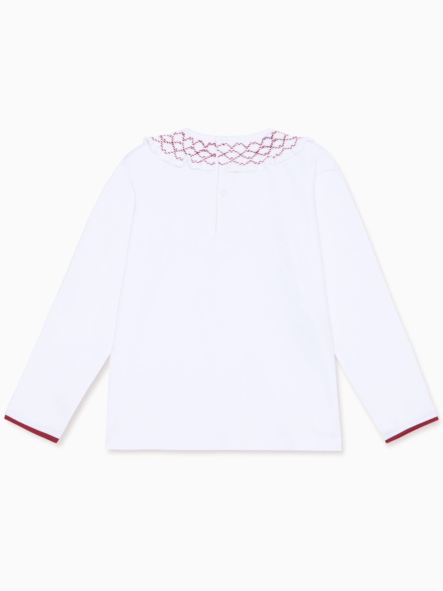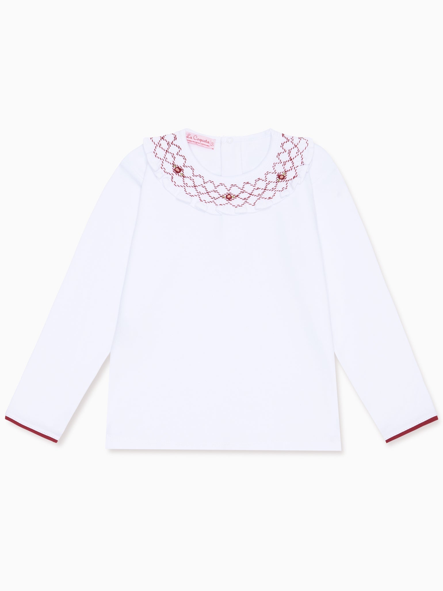 White Liliana Long Sleeve Girl Hand-Smocked Top